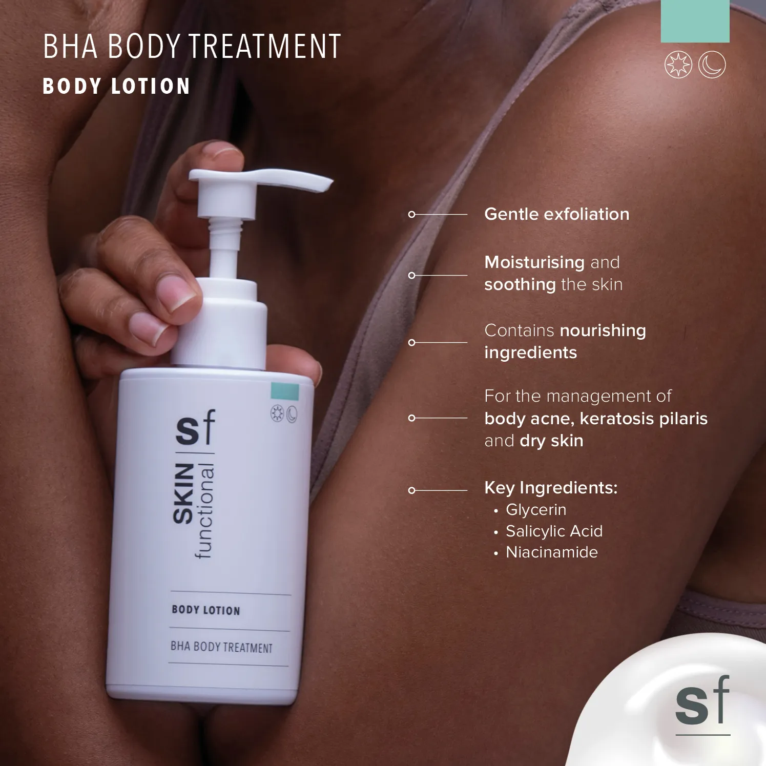 Îmbogățită cu 2% Acid Salicilic (BHA), crema exfoliază blând pielea, contribuind la reducerea rugozității, a porilor înfundați și a imperfecțiunilor, fiind potrivită pentru pielea predispusă la keratoză pilară, coșuri pe corp sau textură neuniformă.